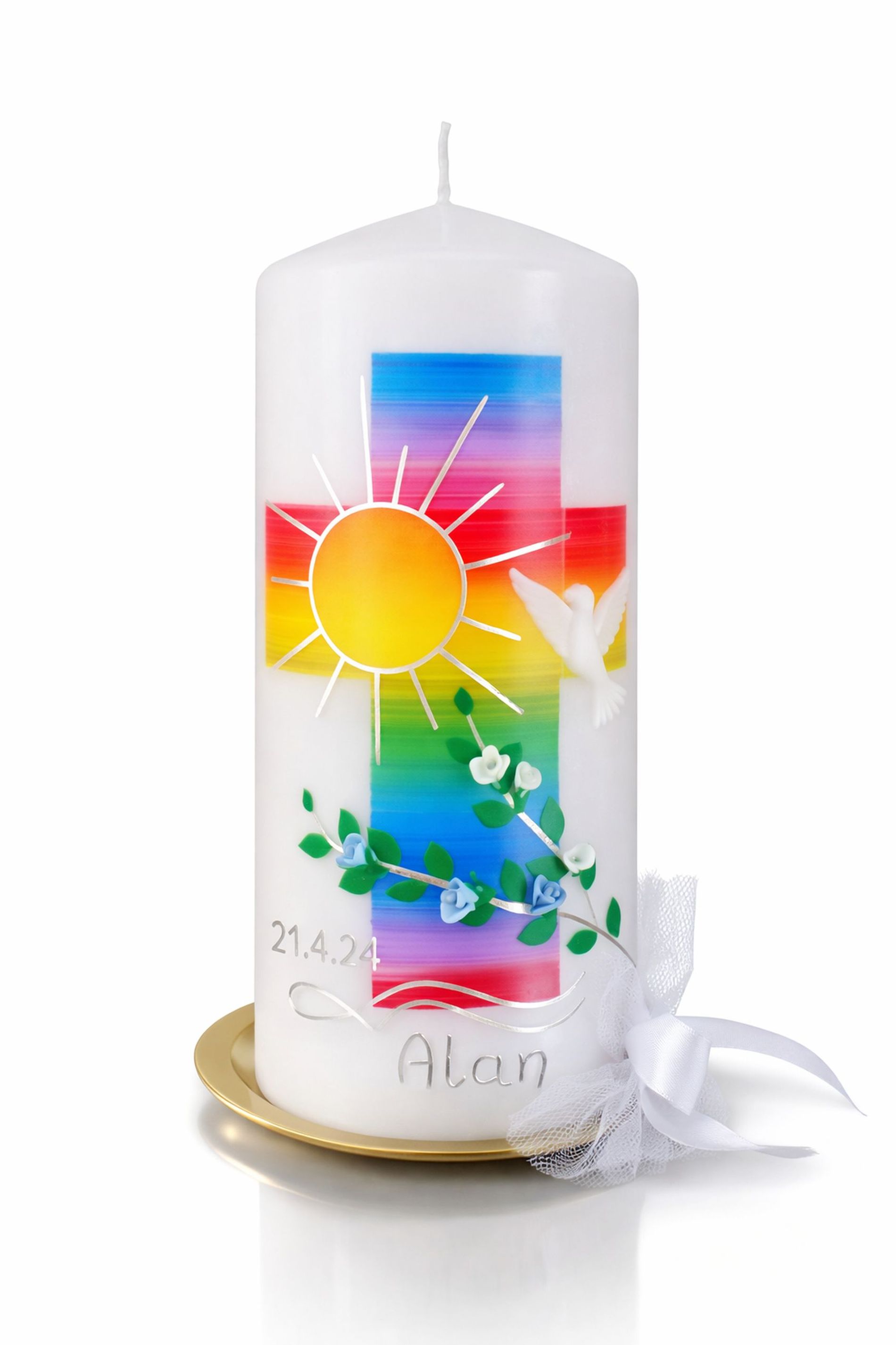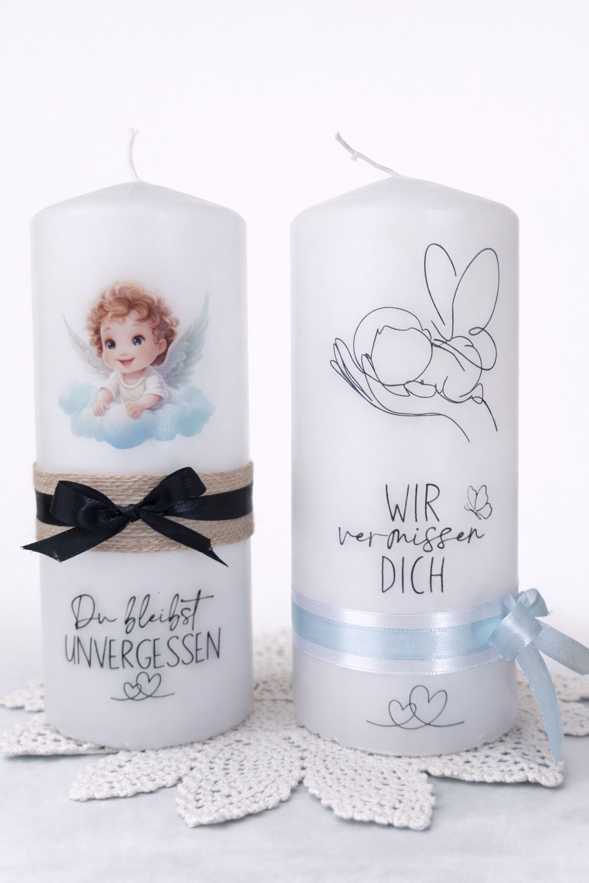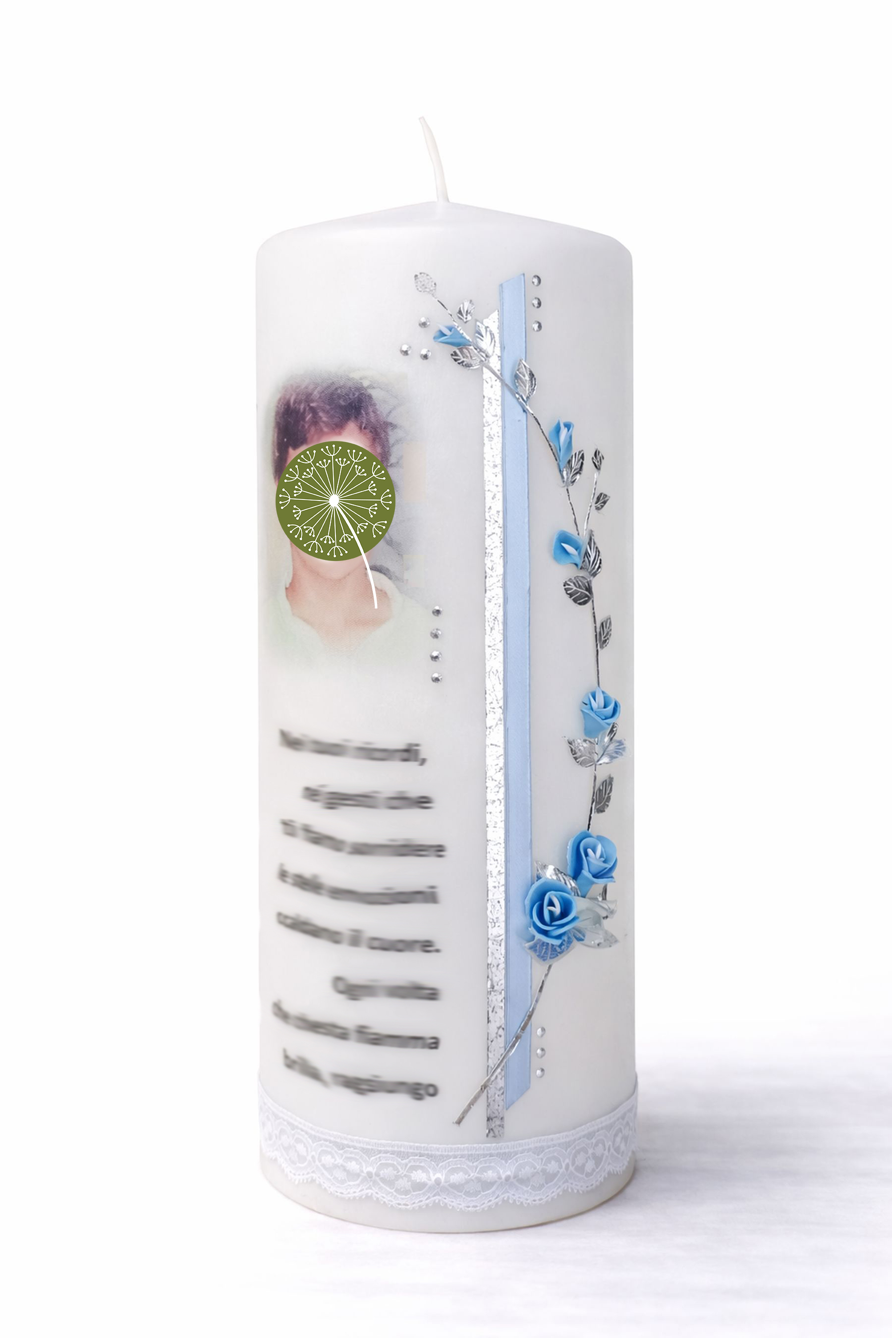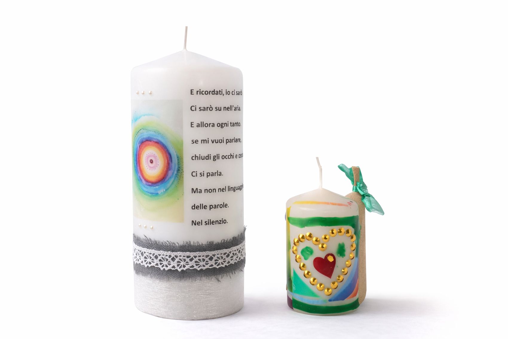 Candele per occasioni come battesimi, matrimoni, anniversari, bambini nati senza vita e ricordi speciali, dipinte, decorate o personalizzate con una foto.