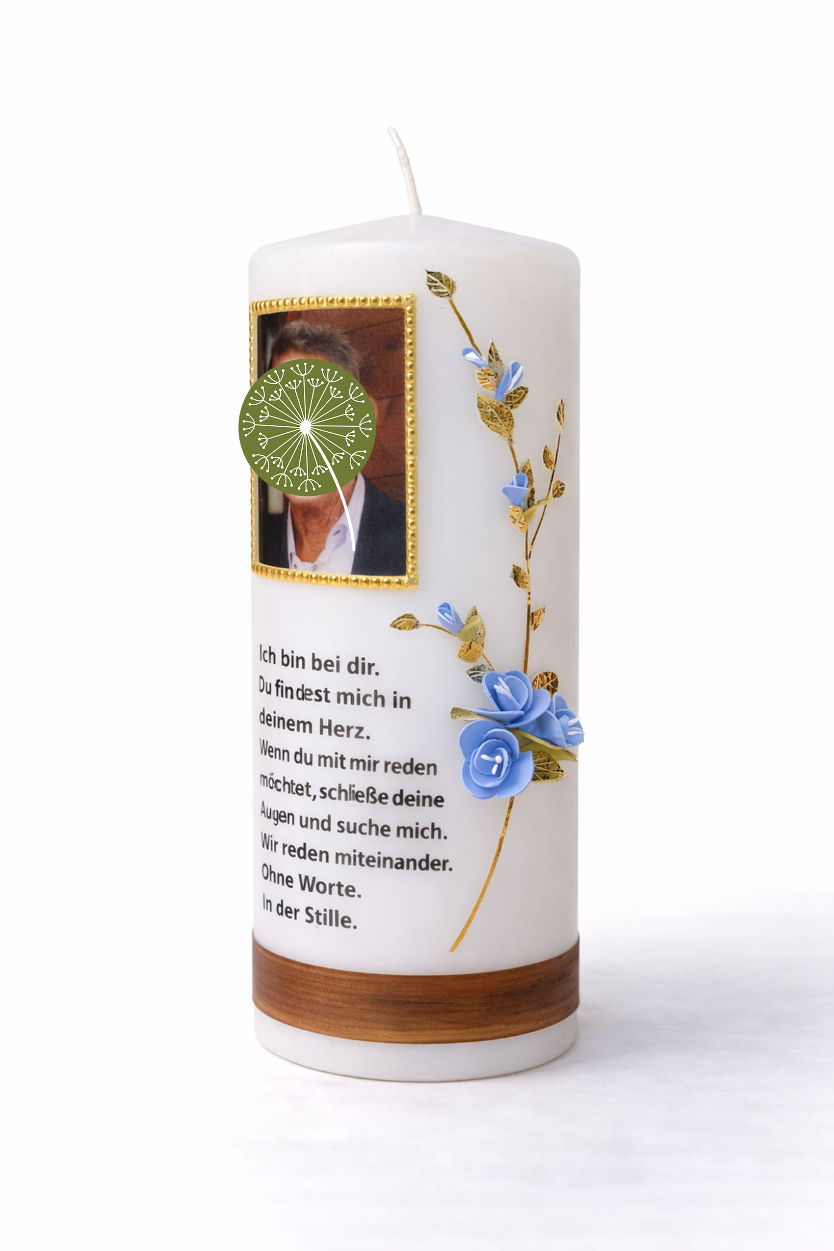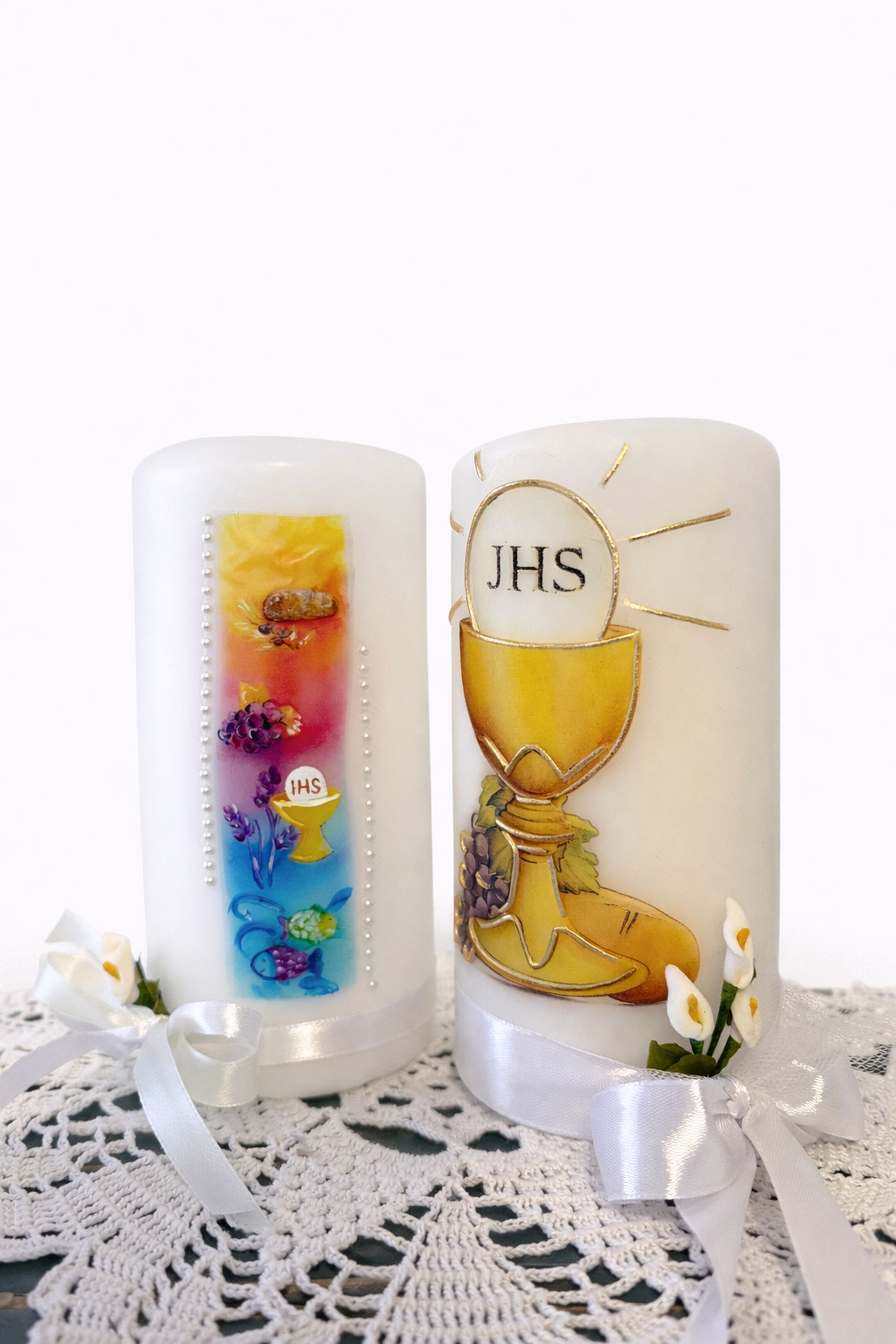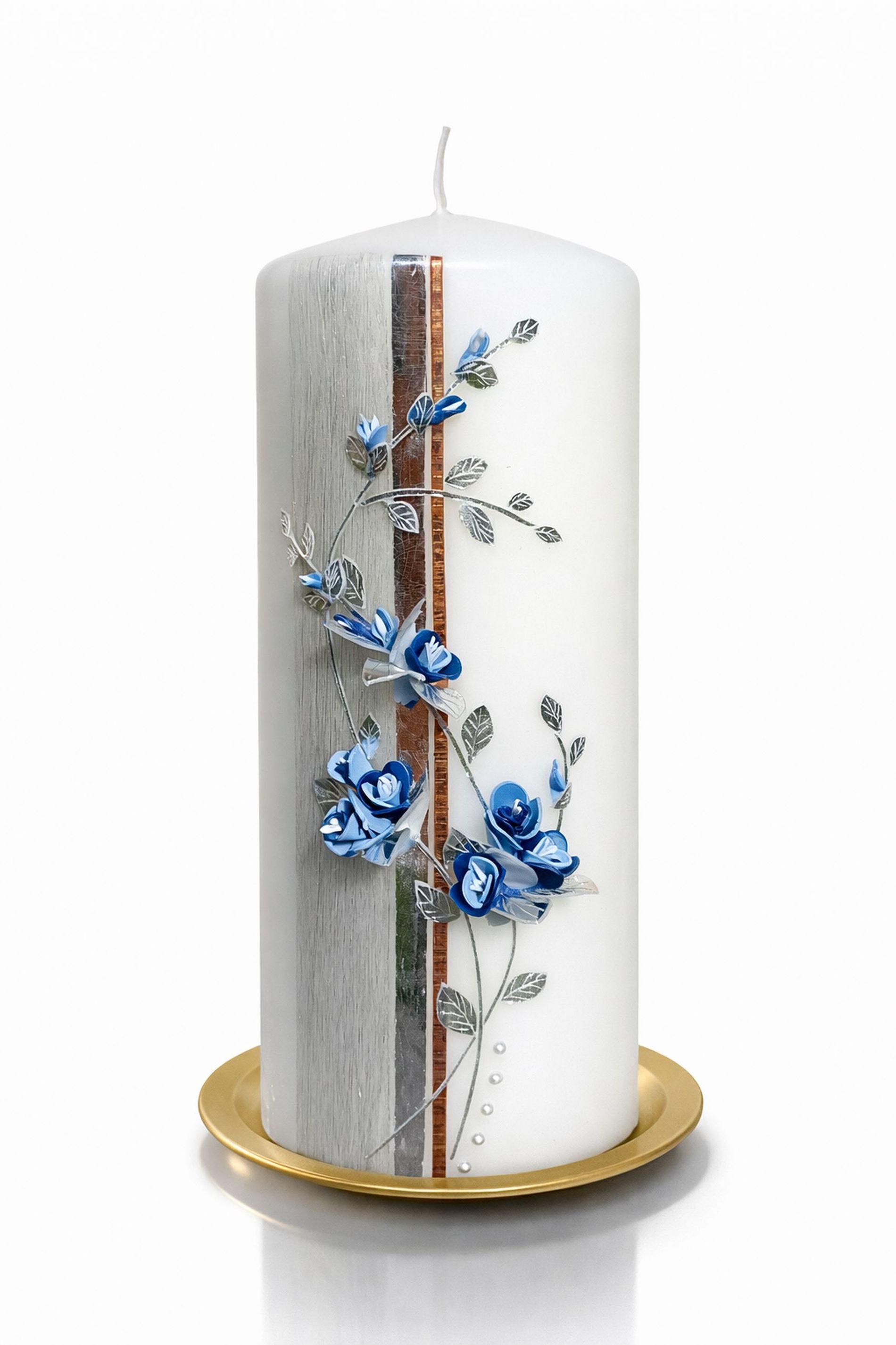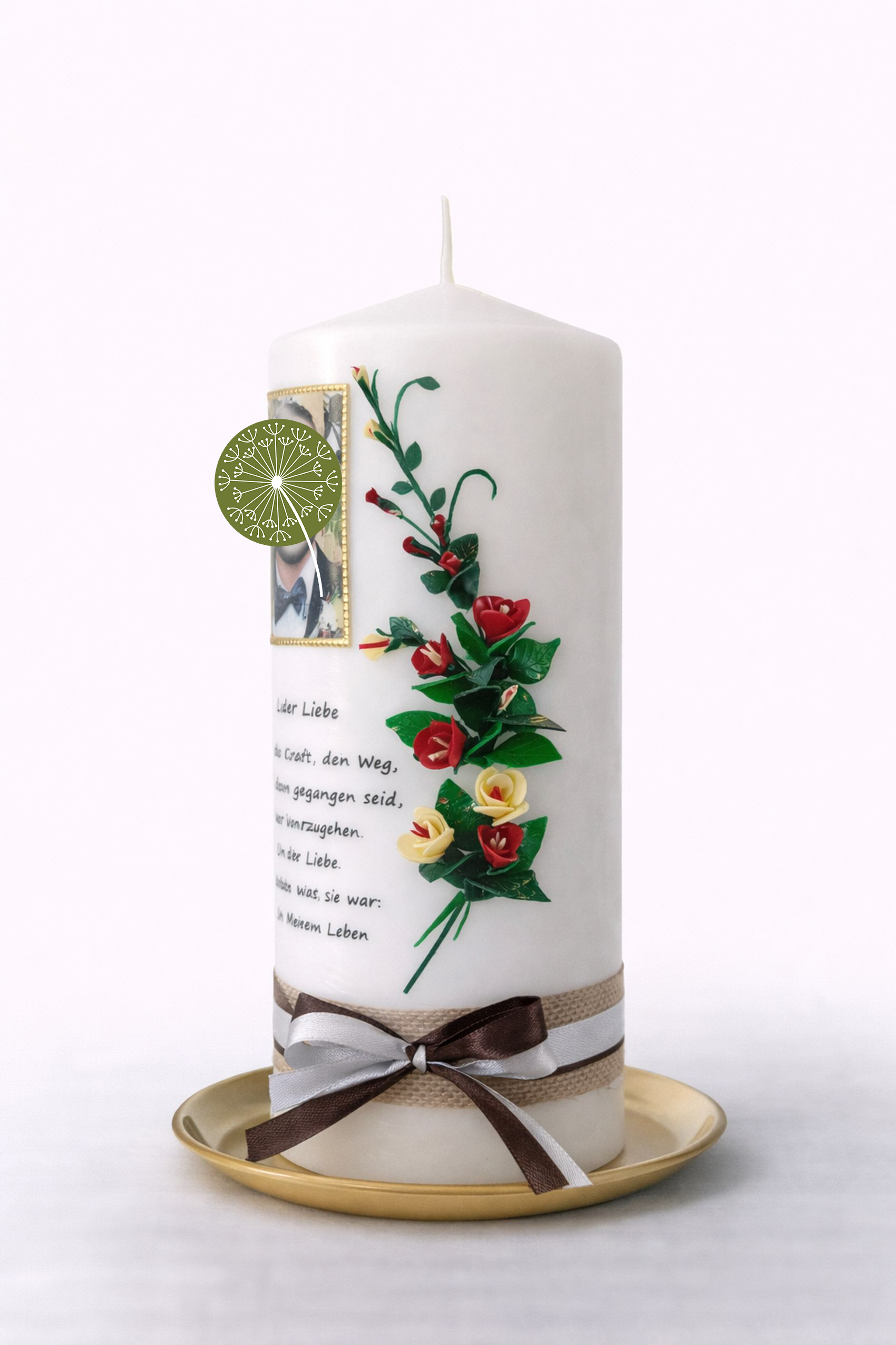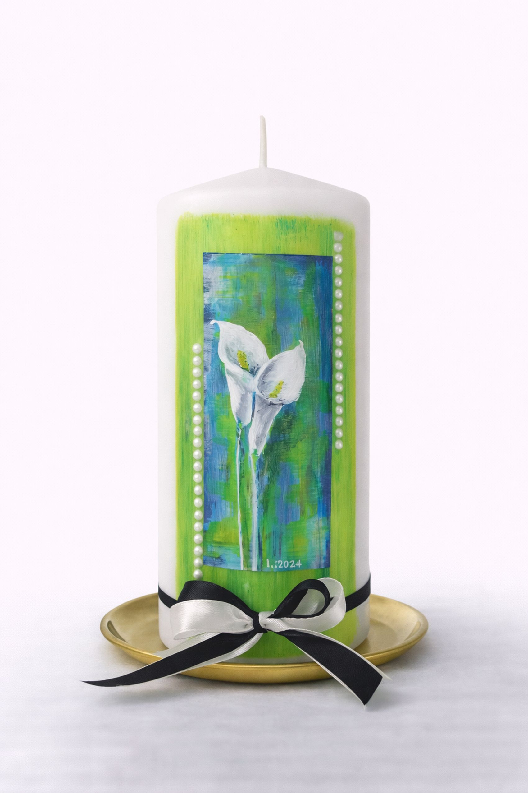 Le mie candele sono realizzate a mano, dipinte e decorate con fogli di cera o arricchite con fiori di cera. Su richiesta, possono essere personalizzate con una fotografia o un’immagine qualunque a scelta, rendendo ogni candela un dono unico e carico di significato.